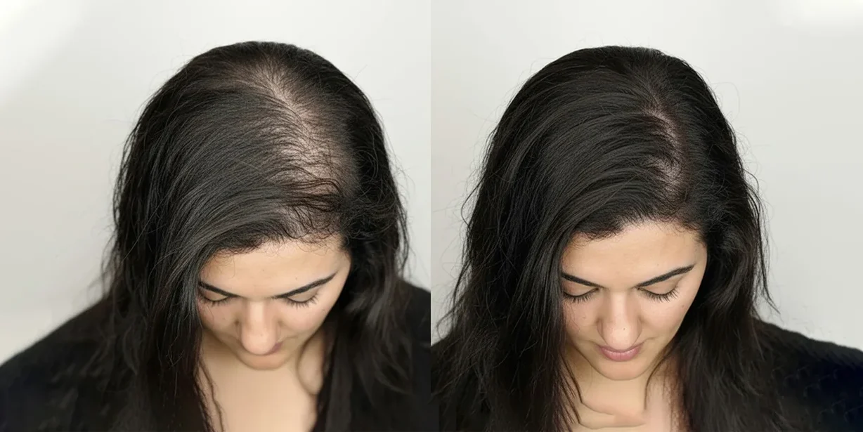 For women we use precise pigment deposits in thinning temple and crown areas for perfect results.